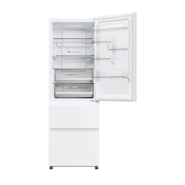 Los frigoríficos Haier 3D 60 cuentan con un sistema de cajones que garantiza un acceso rápido a todo el congelador. Esto permite un uso más eficiente del espacio para tus alimentos congelados y ahorra hasta un 30%* de consumo energético al cargar tus alimentos. Además, las tecnologías Fresher Techs® ajustan constantemente las condiciones para asegurar la calidad y conservación de tus alimentos. Los frigoríficos de la 3D 60 Series 5 de Haier garantizan la perfecta conservación de tus alimentos gracias a zonas especializadas y tecnologías avanzadas, como Haier Air Surround y HCS. *VDE ID N.40048641