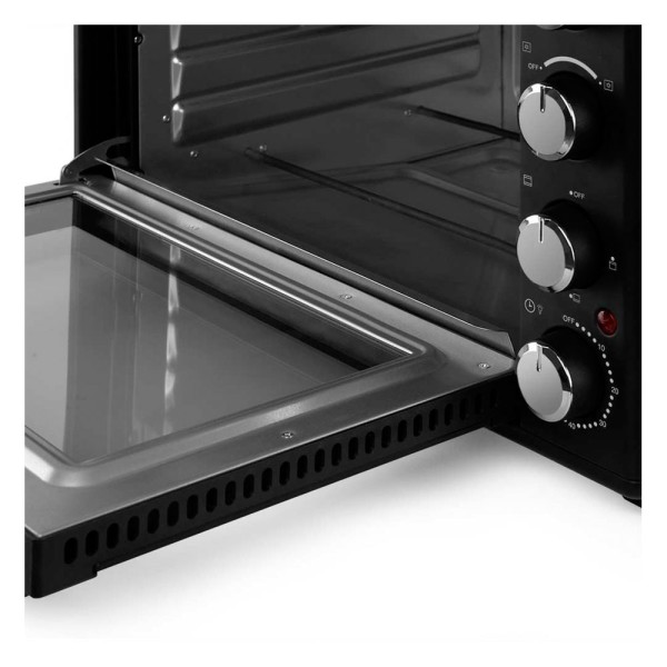 Todo estará bajo control dentro del horno y no habrá riesgos de que nuestra preparación se pase. Añadido a esto, el horno tiene una ventanilla para la observación de la comida junto con una cómoda luz interior. Por otra parte, este horno implementa el novedoso sistema de calor superior e inferior, indispensable para hornear de forma controlada. Esta característica se ve reforzada con la puerta abatible con doble cristal para mantener el calor en su interior.