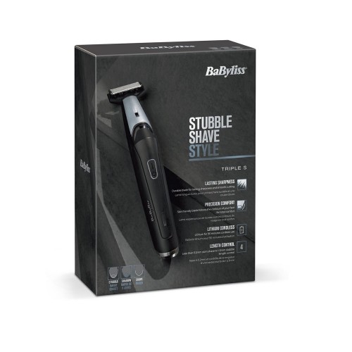 El BaByliss Triple S Stubble, Shadow, Shave, Beard Trimmer ofrece un rendimiento de corte excepcional para un sombreado de precisión corta a longitudes de sombreado ligeramente más largas, o usando la cuchilla sin una guía de peine para un afeitado suave y cómodo de 0.2 mm.